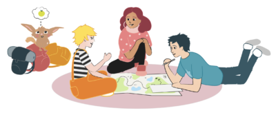 Zeichnungen der Charaktere und einzelner Elemente